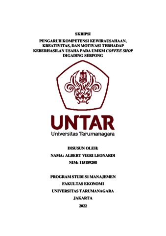 Vieri, Albert (2022) PENGARUH KOMPETENSI KEWIRAUSAHAAN, KREATIVITAS, DAN MOTIVASI TERHADAP KEBERHASILAN USAHA PADA UMKM COFFEE SHOP DIGADING SERPONG. Skripsi thesis, Universitas Tarumanagara.