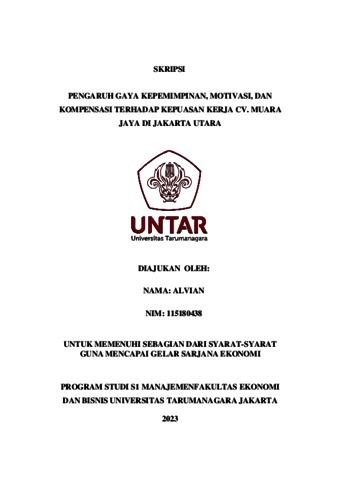 Alvian, Alvian (2023) PENGARUH GAYA KEPEMIMPINAN, MOTIVASI, DAN KOMPENSASI TERHADAP KEPUASAN KERJA CV. MUARA JAYA DI JAKARTA UTARA. Skripsi thesis, Universitas Tarumanagara.