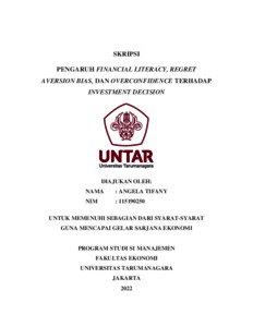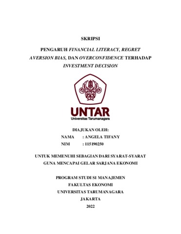 Tifani, Angela (2022) PENGARUH FINANCIAL LITERACY, REGRET AVERSION BIAS, DAN OVERCONFIDENCE TERHADAP INVESTMENT DECISION. Skripsi thesis, Universitas Tarumanagara.