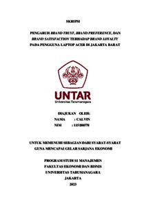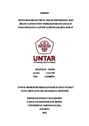 Calvin, Calvin (2023) PENGARUH BRAND TRUST, BRAND PREFERENCE, DAN BRAND SATISFACTION TERHADAP BRAND LOYALTY PADA PENGGUNA LAPTOP ACER DI JAKARTA BARAT. Skripsi thesis, Universitas Tarumanagara.