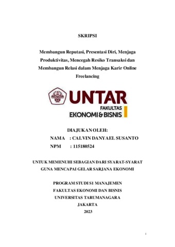 Danyael, Calvin (2023) Membangun Reputasi, Presentasi Diri, Menjaga Produktivitas, Mencegah Resiko Transaksi dan Membangun Relasi dalam Menjaga Karir Online Freelancing. Skripsi thesis, Universitas Tarumanagara.