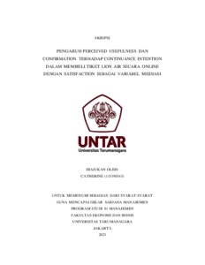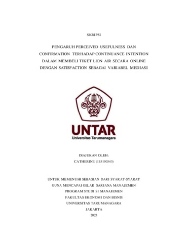 Catherine, Catherine (2023) PENGARUH PERCEIVED USEFULNESS DAN CONFIRMATION TERHADAP CONTINUANCE INTENTION DALAM MEMBELI TIKET LION AIR SECARA ONLINE DENGAN SATISFACTION SEBAGAI VARIABEL MEDIASI. Skripsi thesis, Universitas Tarumanagara.