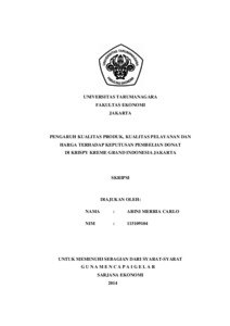 Merria, Arini (2014) PENGARUH KUALITAS PRODUK, KUALITAS PELAYANAN DAN HARGA TERHADAP KEPUTUSAN PEMBELIAN DONAT DI KRISPY KREME GRAND INDONESIA JAKARTA. Skripsi thesis, UNIVERSITAS TARUMANAGARA.