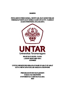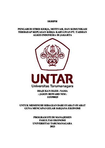 Howard, Jason (2023) PENGARUH STRES KERJA, MOTIVASI, DAN KOMUNIKASI TERHADAP KEPUASAN KERJA KARYAWAN PT. TAISHAN ALKES INDONESIA DI JAKARTA. Skripsi thesis, Universitas Tarumanagara.