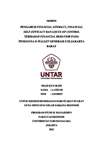 Latifah, Latifah (2022) PENGARUH FINANCIAL LITERACY, FINANCIAL SELF-EFFICACY DAN LOCUS OF CONTROL TERHADAP FINANCIAL BEHAVIOR PADA PENGGUNA E-WALLET GENERASI Z DI JAKARTA BARAT. Skripsi thesis, Universitas Tarumanagara.