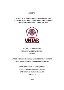 Apriyanti, Melanita (2023) PENGARUH MOTIVASI, KOMPENSASI, DAN LINGKUNGAN KERJA TERHADAP KEPUASAN KERJA PADA ERHA CLINIC DI BSD. Skripsi thesis, Universitas Tarumanagara.