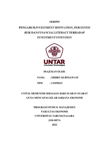 Kurniwati, Merry (2022) PENGARUH INVESTMENT MOTIVATION, PERCEIVED RISK DAN FINANCIAL LITERACY TERHADAP INVESTMENT INTENTION. Skripsi thesis, Universitas Tarumanagara.