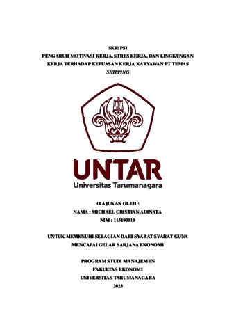 Christian, Michael (2023) PENGARUH MOTIVASI KERJA, STRES KERJA, DAN LINGKUNGAN KERJA TERHADAP KEPUASAN KERJA KARYAWAN PT TEMAS SHIPPING. Skripsi thesis, Universitas Tarumanagara.