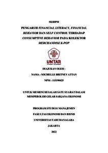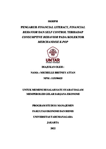 Britney, Michelle (2022) PENGARUH FINANCIAL LITERACY, FINANCIAL BEHAVIOR DAN SELF CONTROL TERHADAP CONSUMPTIVE BEHAVIOR PADA KOLEKTOR MERCHANDISE K-POP. Skripsi thesis, Universitas Tarumanagara.