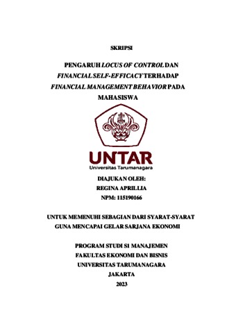 Aprilia, Regina (2023) PENGARUH LOCUS OF CONTROL DAN FINANCIAL SELF-EFFICACY TERHADAP FINANCIAL MANAGEMENT BEHAVIOR PADA MAHASISWA. Skripsi thesis, Universitas Tarumanagara.