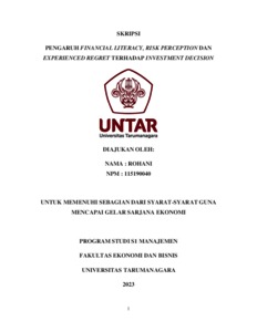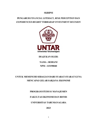 Rohani, Rohani (2023) PENGARUH FINANCIAL LITERACY, RISK PERCEPTION DAN EXPERIENCED REGRET TERHADAP INVESTMENT DECISION. Skripsi thesis, Universitas Tarumanagara.