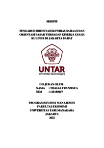 Fransisca, Thalia (2022) PENGARUH ORIENTASI KEWIRAUSAHAAN DAN ORIENTASI PASAR TERHADAP KINERJA USAHA KULINER DI JAKARTA BARAT. Skripsi thesis, Universitas Tarumanagara.