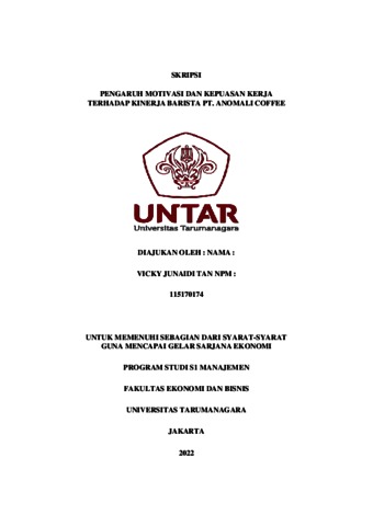 Junaidi, Vicky (2022) PENGARUH MOTIVASI DAN KEPUASAN KERJA TERHADAP KINERJA BARISTA PT. ANOMALI COFFEE. Skripsi thesis, Universitas Tarumanagara.