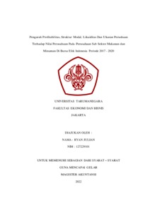 Julian, Ryan (2022) Pengaruh Profitabilitas, Struktur Modal, Likuiditas Dan Ukuran Perushaan Terhadap Nilai Perusahaan Pada Perusahaan Sub Sektor Makanan dan Minuman Di Bursa Efek Indonesia Periode 2017 - 2020. Masters thesis, Universitas Tarumanagara.