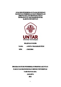 Niasarah, Aneta (2022) ANALISIS PENERIMAAN PAJAK BUMI DAN BANGUNAN PERDESAAN DAN PERKOTAAN (PBB P2) DALAM MENINGKATKAN PENDAPATAN ASLI DAERAH (PAD) KABUPATEN BINTAN. Masters thesis, Universitas Tarumanagara.