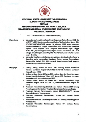 Akreditasi, FH SK Rektor Pengangkatan Kaprodi Mag. Kenotariatan. [Image] (Unpublished)