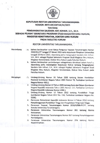 Akreditasi, FH SK Pengangkatan Sek. Program Studi Magister Ilmu Hukum. [Image] (Unpublished)