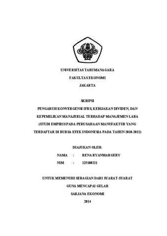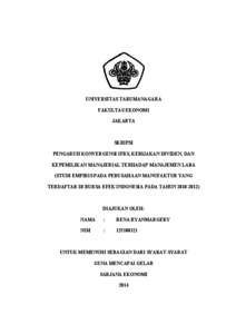 Ryanmargery, Rena (2014) PENGARUH KONVERGENSI IFRS, KEBIJAKAN DIVIDEN, DAN KEPEMILIKAN MANAJERIAL TERHADAP MANAJEMEN LABA (STUDI EMPIRIS PADA PERUSAHAAN MANUFAKTUR YANG TERDAFTAR DI BURSA EFEK INDONESIA PADA TAHUN 2010-2012). Skripsi thesis, Universitas Tarumanagara.