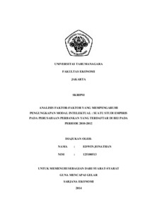 Jonathan, Edwin (2014) ANALISIS FAKTOR-FAKTOR YANG MEMPENGARUHI PENGUNGKAPAN MODAL INTELEKTUAL : SUATU STUDI EMPIRIS PADA PERUSAHAAN PERBANKAN YANG TERDAFTAR DI BEI PADA PERIODE 2010-2012. Skripsi thesis, Universitas Tarumanagara.