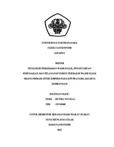 Natalia, Devira (2015) PENGARUH PEMAHAMAN WAJIB PAJAK, PENGETAHUAN PERPAJAKAN, DAN PELAYANAN FISKUS TERHADAP KEPATUHAN WAJIB PAJAK ORANG PRIBADI (STUDI EMPIRIS PADA KPP PRATAMA JAKARTA KEMBANGAN). Skripsi thesis, Universitas Tarumanagara.