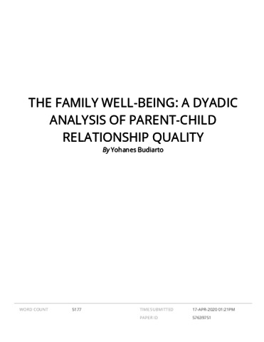 Yohanes Budiarto*, Penulis Pertama and Fransisca Iriani Roesmala Dewib, Penulis Kedua and Rahmah H, Penulis Ketiga The Family Well-Being: A Dyadic Analysis of Parent-Child Relationship Quality. The Family Well-Being: A Dyadic Analysis of Parent-Child Relationship Quality.