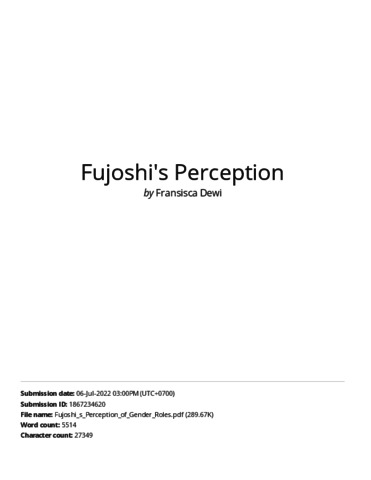 Vienchenzia Oeyta Dwitama Dinatha, Penulis Pertama and Fransisca Iriani Roesmala Dewi, Penulis Kedua and Denrich Suryadi, Penulis Ketiga (2021) TURNITIN Fujoshi’s Perception of Gender Roles. TICASH 2021. (Unpublished)