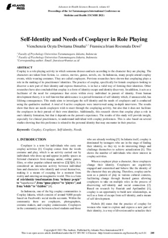8. [ARTICLE] Self-Identity and Needs of Cosplayer in Role Playing.pdf Download (1MB) | Preview |