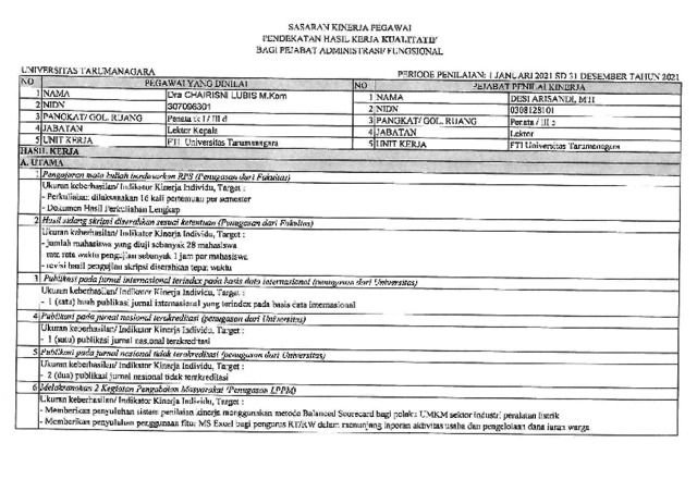 Chairisni Lubis, Pertama SKP TAHUN 2021 & 2022. SKP TAHUN 2021 & 2022.