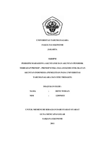 Wissan, Dewi (2011) PERSEPSI MAHASISWA AKUNTANSI DAN AKUNTAN PENDIDIK TERHADAP PRINSIP – PRINSIP ETIKA DALAM KODE ETIK IKATAN AKUNTAN INDONESIA (PENELITIAN PADA UNIVERSITAS TARUMANAGARA DAN STIE TRISAKTI). Skripsi thesis, Universitas Tarumanagara.