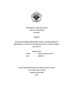 Oyong, Diani Viviani (2011) PENGARUH PERSEPSI PROFESIONALISME AUDITOR TERHADAP PERTIMBANGAN TINGKAT MATERIALITAS PADA AUDIT LAPORAN KEUANGAN. Skripsi thesis, Universitas Tarumanagara.