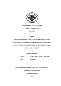 Kosasih, Florentina Yunita (2011) ANALISIS FAKTOR-FAKTOR YANG MEMPENGARUHI LUAS PENGUNGKAPAN CSR PADA LAPORAN TAHUNAN PERUSAHAAN MANUFAKTUR YANG TERDAFTAR DI BURSA EFEK INDONESIA PADA TAHUN 2007-2009. Skripsi thesis, Universitas Tarumanagara.
