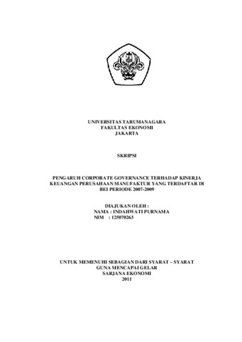 Purnama, Indahwati (2011) PENGARUH CORPORATE GOVERNANCE TERHADAP KINERJA KEUANGAN PERUSAHAAN MANUFAKTUR YANG TERDAFTAR DI BEI PERIODE 2007-2009. Skripsi thesis, Universitas Tarumanagara.