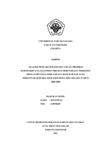 Jonathan, Jonathan (2011) ANALISIS PENGARUH RASIO KEUANGAN, PREDIKSI KEBANGKRUTAN, DAN PERTUMBUHAN PERUSAHAAN TERHADAP OPINI AUDIT PADA PERUSAHAAN MANUFAKTUR YANG TERDAFTAR DI BURSA EFEK INDONESIA (BEI) SELAMA TAHUN 2008-2009. Skripsi thesis, Universitas Tarumanagara.