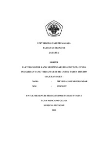 Iskandar, Meylisa Januar (2011) FAKTOR-FAKTOR YANG MEMPENGARUHI AUDIT DELAY PADA PEUSAHAAN YANG TERDAFTAR DI BEI UNTUK TAHUN 2003-2009. Skripsi thesis, Universitas Tarumanagara.