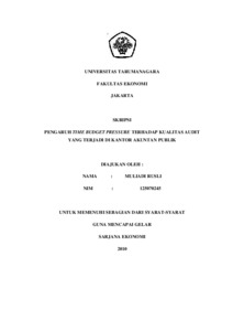 Rusli, Muliadi (2011) PENGARUH TIME BUDGET PRESSURE TERHADAP KUALITAS AUDIT YANG TERJADI DI KANTOR AKUNTAN PUBLIK. Skripsi thesis, Universitas Tarumanagara.