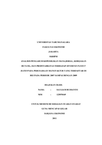 Tujuan diadakan penelitian ini adalah untuk meneliti pengaruh kepemilikan manajerial, kebijakan hutang dan profitabilitas terhadap dividend payout ratio. Data yang digunakan adalah 93 perusahaan yang ada di Bursa Efek Indonesia (BEI) pada periode pengamatan 2007 sampai dengan 2009. Metode penelitian yang digunakan adalah penelitian kepustakaan yang kemudian diolah menggunakan komputer dengan membuat hipotesis H1- H4. Berdasarkan penelitian yang dilakukan secara bersama-sama, tidak ditemukan pengaruh kepemilikan manajerial, kebijakan hutang, dan profitabilitas terhadap dividend payout ratio. Berdasarkan hasil penelitian secara terpisah, tidak ada satupun variabel yang diteliti berpengaruh terhadap dividend payout ratio.