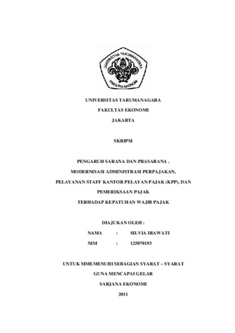 Irawati, Silvia (2011) PENGARUH SARANA DAN PRASARANA , MODERNISASI ADMINISTRASI PERPAJAKAN, PELAYANAN STAFF KANTOR PELAYAN PAJAK (KPP), DAN PEMERIKSAAN PAJAK TERHADAP KEPATUHAN WAJIB PAJAK. Skripsi thesis, Universitas Tarumanagara.