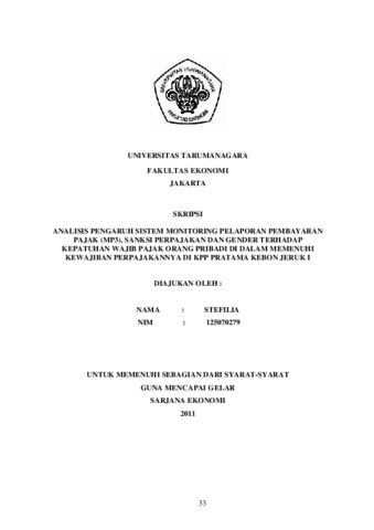 Stefilia, Stefilia (2011) ANALISIS PENGARUH SISTEM MONITORING PELAPORAN PEMBAYARAN PAJAK (MP3), SANKSI PERPAJAKAN DAN GENDER TERHADAP KEPATUHAN WAJIB PAJAK ORANG PRIBADI DI DALAM MEMENUHI KEWAJIBAN PERPAJAKANNYA DI KPP PRATAMA KEBON JERUK I. Skripsi thesis, Universitas Tarumanagara.