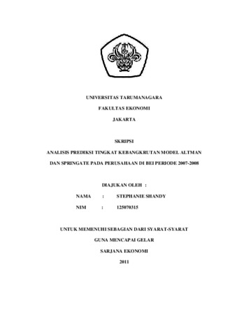 Shandy, Stephanie (2011) ANALISIS PREDIKSI TINGKAT KEBANGKRUTAN MODEL ALTMAN DAN SPRINGATE PADA PERUSAHAAN DI BEI PERIODE 2007-2008. Skripsi thesis, Universitas Tarumanagara.