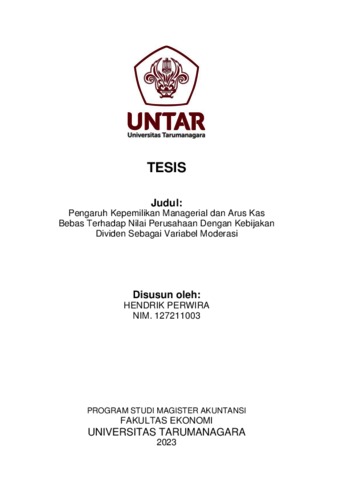Perwira, Hendrik (2023) Pengaruh Kepemilikan Managerial dan Arus Kas Bebas Terhadap Nilai Perusahaan Dengan Kebijakan Dividen Sebagai Variabel Moderasi. Skripsi thesis, Universitas Tarumanagara.