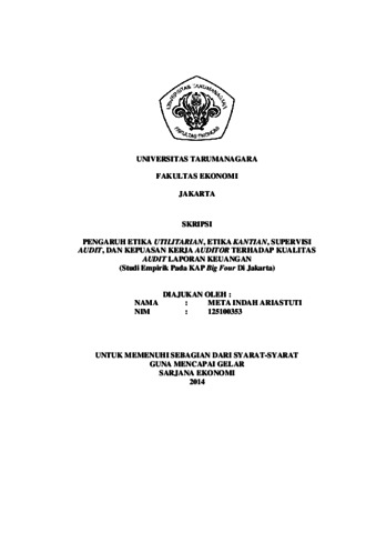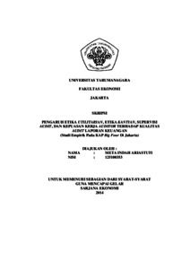 Ariastuti, Meta Indah (2014) PENGARUH ETIKA UTILITARIAN, ETIKA KANTIAN, SUPERVISI AUDIT, DAN KEPUASAN KERJA AUDITOR TERHADAP KUALITAS AUDIT LAPORAN KEUANGAN (Studi Empirik Pada KAP Big Four Di Jakarta). Skripsi thesis, Universitas Tarumanagara.