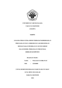 Tandrawan, William (2014) ANALISIA PERAN ETIKA BISNIS TERHADAP KEBERHASILAN PERUSAHAAN PASCA MERGER DAN AKUISISI DENGAN MENGGUNAKAN PENDEKATAN SECOND ORDER DALAM MODEL PERSAMAAN STRUKTURAL BERBASIS KOMPONEN. Skripsi thesis, Universitas Tarumanagara.