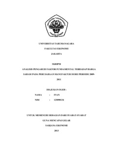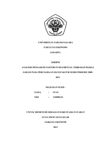 Ivan, Ivan (2014) ANALISIS PENGARUH FAKTOR FUNDAMENTAL TERHADAP HARGA SAHAM PADA PERUSAHAAN MANUFAKTUR DI BEI PERIODE 2009-2011. Skripsi thesis, Universitas Tarumanagara.
