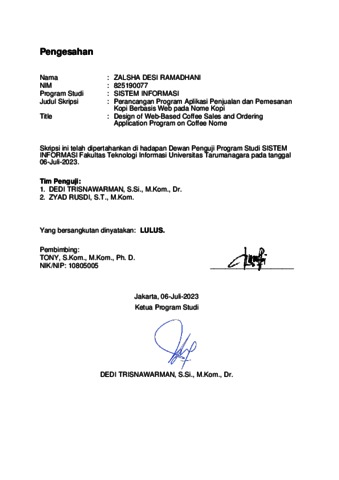 Ramadhani, Zalsha Desi (2023) Perancangan program aplikasi penjualan kopi berbasis web pada Nome Kopi. Skripsi thesis, Universitas Tarumanagara.