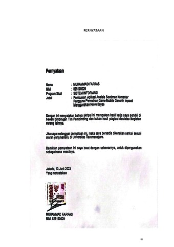 Farras, Muhammad (2023) Pembuatan aplikasi analisis sentimen komentar pengguna permainan game mobile genshin impact menggunakan naive bayes. Skripsi thesis, Universitas Tarumanagara.