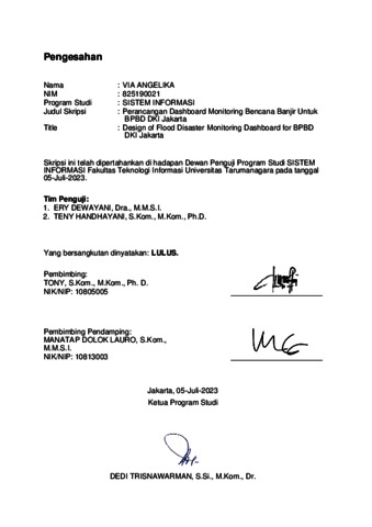 Angelika, Via (2023) Perancangan dashboard monitoring bencana banjir untuk BPBD DKI Jakarta. Skripsi thesis, Universitas Tarumanagara.