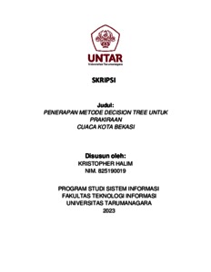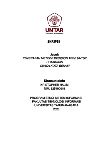 Halim, Kristopher (2023) Penerapan metode decision tree untuk prakiraan cuaca kota Bekasi. Skripsi thesis, Universitas Tarumanagara.