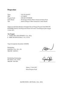 Ranti, Sylvia (2023) Perancangan interior hotel Akmani di Jakarta Pusat (DI - 2458). Skripsi thesis, Universitas Tarumanagara.