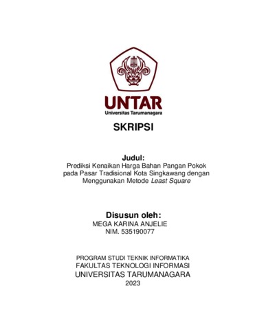 Anjelie, Mega Karina (2023) Prediksi kenaikan harga bahan pangan pokok pada pasar tradisional kota Singkawang dengan menggunakan metode least square. Skripsi thesis, Universitas Tarumanagara.