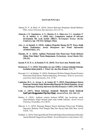 Perancangan Sistem Informasi Penyewaan Jasa Dekorasi Berbasis Web Pada Gianluca Project merupakan rancangan yang dibuat untuk mempermudah customer dalam melakukan penyewaan jasa dekorasi serta membantu Gianluca Project dalam pengolahan data booking jasa dekorasi dengan lebih baik. Proses booking pada Gianluca Project sekarang masih menggunakan cara semi teknologi yaitu customer langsung menghubungi owner melalui aplikasi Whatsapp. Perancangan Sistem Informasi Penyewaan Jasa Dekorasi Berbasis Web Pada Gianluca Project memiliki fitur gallery yang berisikan proyek-proyek yang sudah dikerjakan oleh Gianluca Project serta terdapat paket-paket dekorasi yang bisa customer pilih. Perancangan Sistem Informasi Penyewaan Jasa Dekorasi Berbasis Web Pada Gianluca Project membantu pelanggan dalam melakukan booking dan pembayaran yang bisa dilakukan dimana saja dan kapan saja. Perancangan Sistem Informasi Penyewaan Jasa Dekorasi Berbasis Web Pada Gianluca Project juga membantu admin dalam mengelola booking dan pembayaran yang telah dilakukan oleh customer. Perancangan Sistem Informasi ini menggunakan metodologi pengembangan System Development Life Cycle (SDLC) Waterfall. Basis Data yang digunakan aplikasi ini menggunakan basis data MySQL. Bahasa pemrograman yang digunakan yaitu HTML, CSS dan PHP dengan Framework Bootstrap yang menghasilkan web app yang menarik dan dinamis. Dengan aplikasi web yang dinamis dapat membantu admin dalam akses dan olah data, serta membantu customer dalam melakukan booking dan transaksi yang dapat mempengaruhi perkembangan bisnis. Kata Kunci: Kata Kunci: booking, jasa dekorasi, perancangan sistem informasi, web app, waterfal